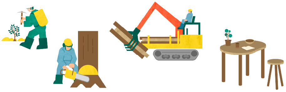 森林資源の循環利用が進んで脱炭素社会の実現に貢献していくよう、森林整備と再造林をその担い手の確保とともに推進していきます。